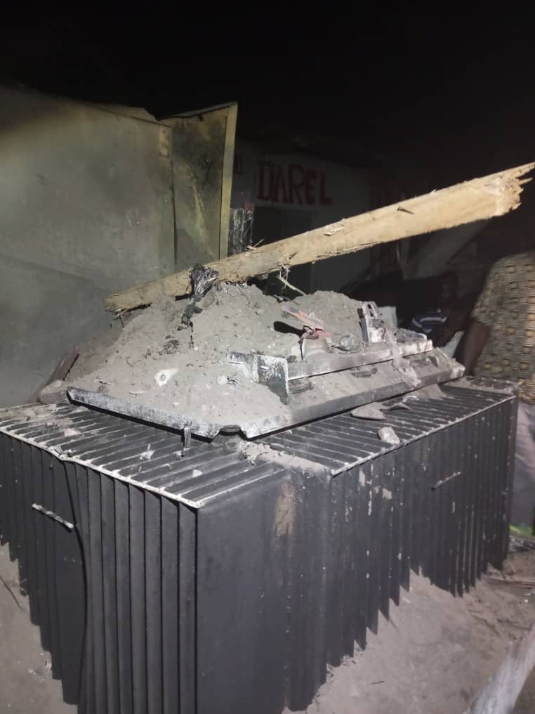 La population de ce coin venue en renfort pour éteindre ce feu n’a pu sauver cet engin important pour la fourniture en électricité.