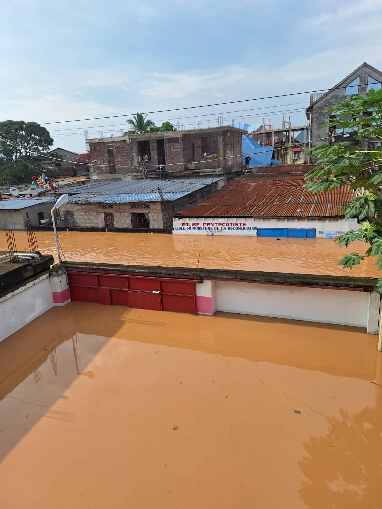 Merci beaucoup d’abord pour vos prières pour la compassion que vous avez faite à moi et à ma famille pour ce qui est arrivé, cette terrible inondation du 5 avril qui restera gravée dans nos mémoires parce que pour la première fois depuis la nuit des temps c’est la première fois que telle inondation arrive et touche plus de 5 Communes de la Ville de Kinshasa capitale et surtout les quartiers qui sont riverains de la rivière N’djili, rivière qui débouche sur le fleuve Congo. Comme je disais les inondations arrivent souvent et moi je suis par rapport à la rivière à 100 m généralement ce sont des voisins qui sont inondés parce que moi par rapport à la route j’ai construit quand même au-dessus environ sur 70 cm plus haut par rapport au niveau de la rue ce qui fait que quand il y a inondation tout autour de moi l’eau chez moi n’arrive pas bien au contraire les gens venaient se réfugier chez moi. Mais je disais toujours à mes enfants en blaguant il faudrait toujours craindre les inondations qui arrivent chaque 40 ans je disais comme ça pensant que moi je ne serai plus là mais voilà aujourd’hui 14 ans après notre arrivée dans ce quartier et pour les anciens qui habitent plus de 30 ans et voilà cette inondation est arrivée. Au fait à Kinshasa Il avait plus le jour avant le vendredi et les pluies qui ont débordé qui ont créé tous ces désastres sont le pluies de samedi 5 avril toute la journée où il a plu aux Kongo central, la Province voisine la rivière N’djili est assez longue il traverse le sud-Est de Kinshasa et il accueille aussi beaucoup d’affluents entre autres la rivière Lukaya qui est un des grands affluants de la rivière N’djili qui provient du Kongo Central là où il avait plu abondamment et voilà le samedi à partir de 17h00 l’eau a commencé à monter jusqu’au dimanche à 11h00 où finalement nous avons commencé à observer la stabilisation et la lente diminution d’eau et donc vous pouvez imaginer la quantité d’eau qui est descendue, la quantité d’eau qui afflue dans notre quartier, la quantité d’eau qui est entrée dans la parcelle avec 1,5 m de haut et la quantité d’eau qui est entrée dans la maison où nous avons atteint 82 cm. Nous avons pu sauver ce que nous avons pu. Tout le reste sous eau : les 2 véhicules, le groupe électrogène, la buanderie, le bureau de Dolorès, mon épouse, la cuisine,…
