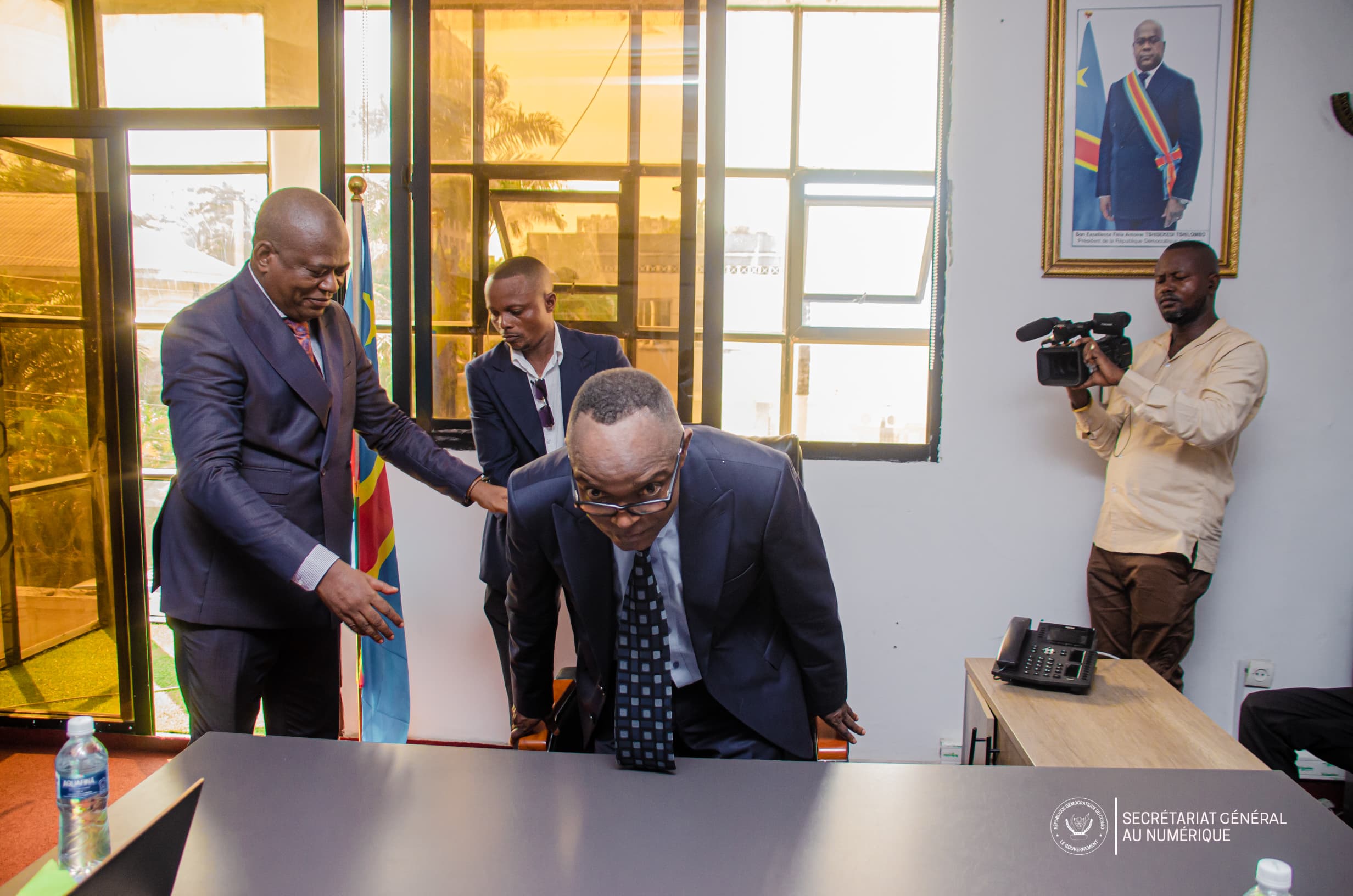 C’est ainsi que trois inspecteurs de IGAP(Inspection Générale de l’Administration Publique) ont été dépêchés au sein du bâtiment administratif du Secrétariat Général au Numérique pour une cérémonie de sa remise en service, conformément au Statut du Personnel de Carrière des Services Publics de l’Etat et à l’Arrêté y relatif, N°009/CAB.VPM-MA-ISP/JPL/2025 du 29 mars 2025 du Vice-Premier Ministre, Ministre de la Fonction Publique, Modernisation de l’Administration et Innovation du Service Public.