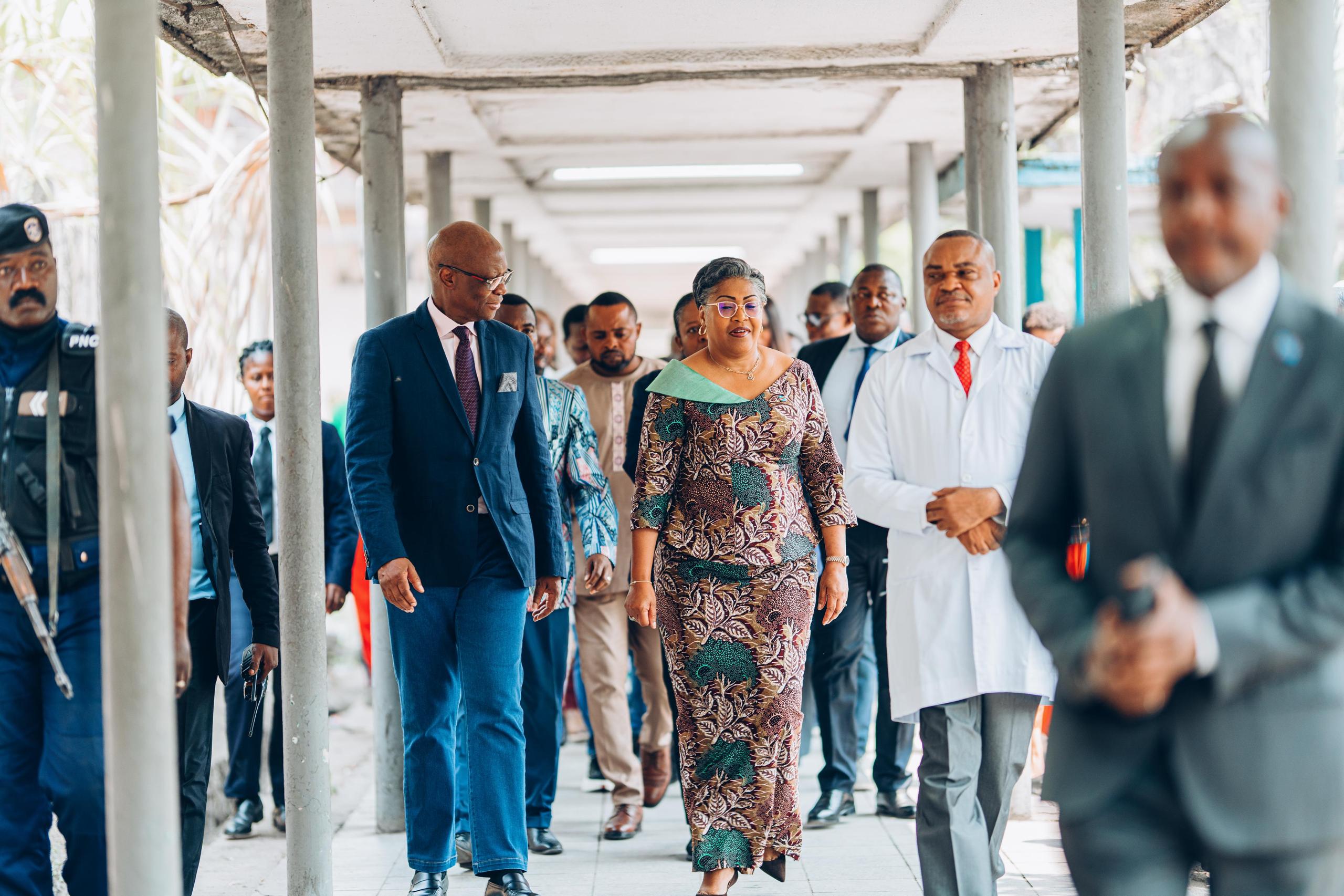 Kinshasa, le 02 octobre 2025 – La prise en charge et la réinsertion sociale des femmes victimes de violences sexuelles en République démocratique du Congo, demeure l’une des priorités du Gouvernement central. La Première Ministre, à peine rentrée dans la capitale, après une mission intense au Kongo central, a visité ce jeudi le Centre Intégré des Services Multisectoriels de Kintambo. Accompagnée du Ministre de la Santé publique, Hygiène et Prévoyance sociale, et d’une délégation conduite par la duchesse Sophie d’Edimbourg, membre de la famille royale britannique, Judith Suminwa a effectué une ronde dans différents services dudit centre de l’hôpital général de référence de Kintambo.